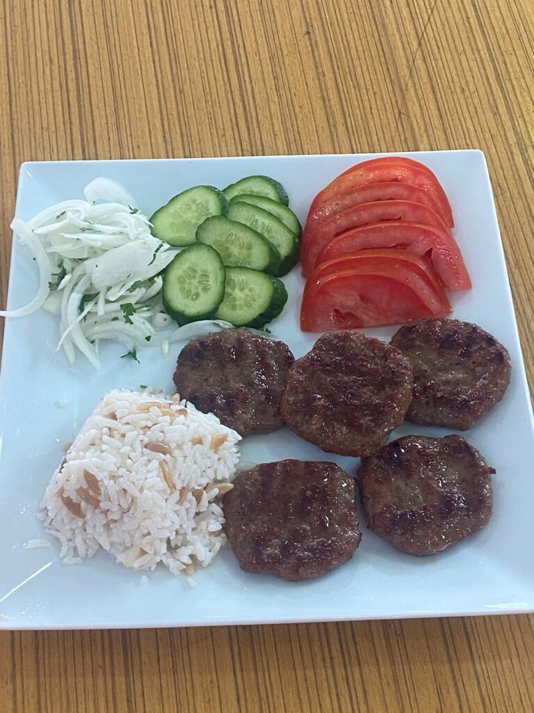 Köfte – Meatball İçindekiler:Pilav, Köz Domates, Köz Biber ve Yeşillik ile Servis Edilir. Fiyat:500 TL